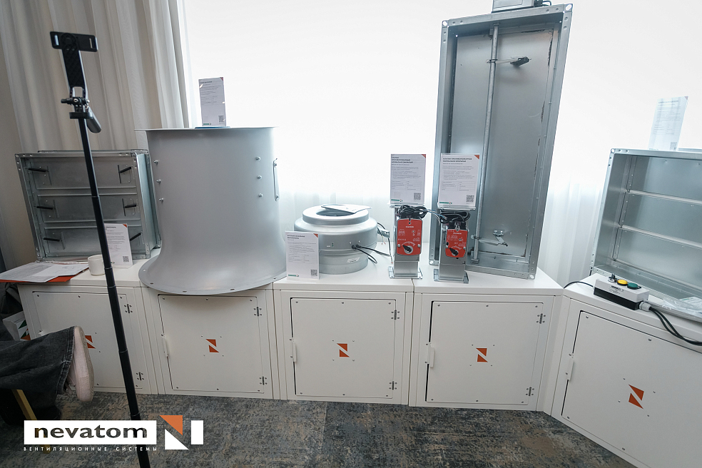 Во время кофе-брейков работа не останавливалась: участники активно подходили к выставочной зоне, где в этом году было особенно много новинок. Среди них — секции приточно-вытяжной установки «Катунь», секция горячего резерва двигателя, противопожарные клапаны, клапаны избыточного давления и другие разработки. Многие лично тестировали оборудование, задавали вопросы специалистам и разбирались в нюансах прямо на месте.