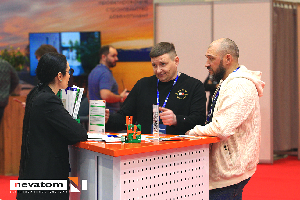 На стенде работала интерактивная зона, где посетители тестировали возможности личного кабинета на сайте nevatom.ru. Также можно было собрать L-образные воздуховоды и оценить их преимущества.
