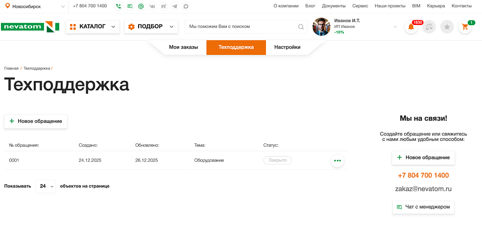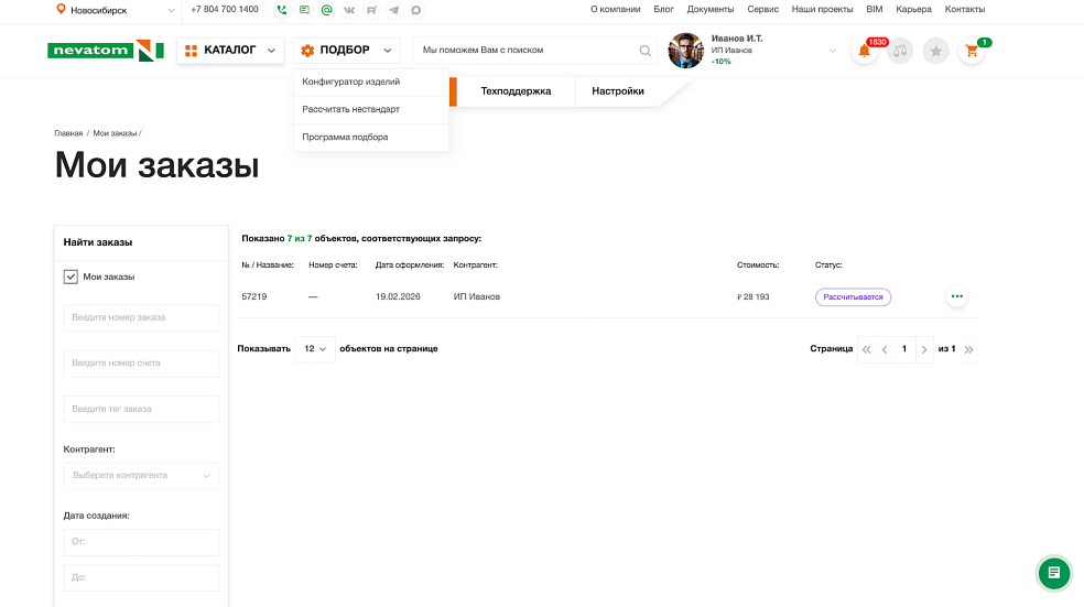 Компания НЕВАТОМ продолжает развивать и улучшать работу с сайтом nevatom.ru. Мы обновили личный кабинет и добавили новые возможности, которые упрощают оформление заказов, работу с подбором и взаимодействие с технической поддержкой. Рассказываем, что изменилось и как это поможет вам в работе.