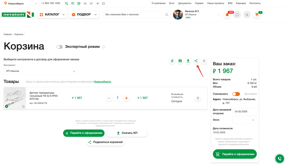 Реализована возможность делиться содержимым корзины с помощью ссылки и QR-кода в КП.